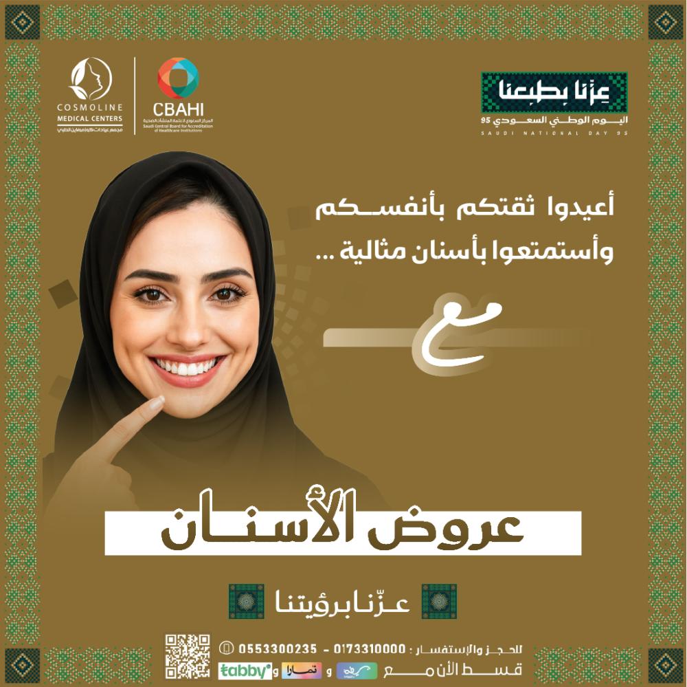 بمناسبة اليوم الوطني 95نقدم لكم افضل عروض الاسنان المدة محدودةلحجز الموعد بعد الشراء :0173310000-0553300235